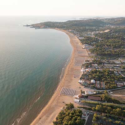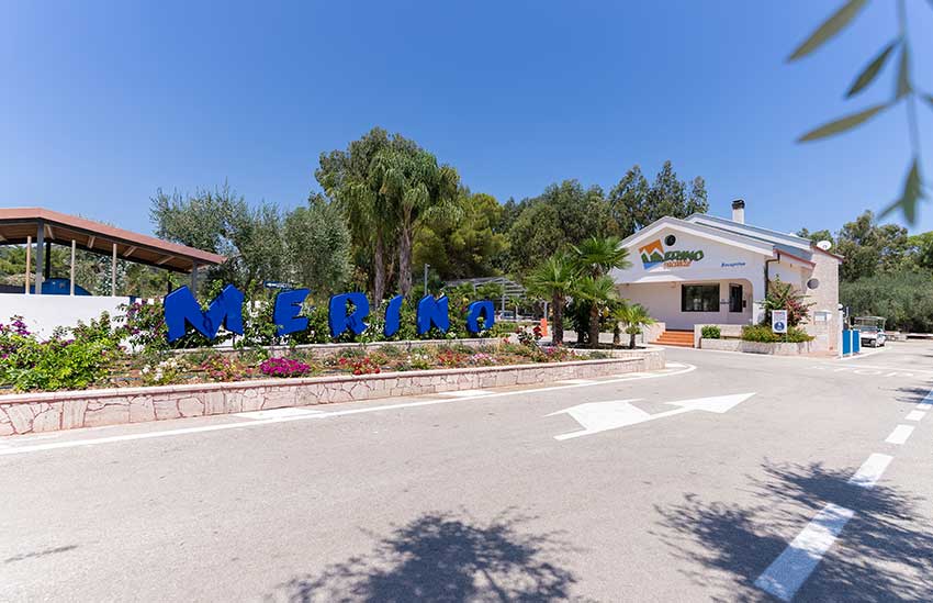 Il Merino Village con camping è a 7 km. da Vieste, è situato al centro di una delle più belle spiagge del Gargano, la baia di Santa Maria di Merino, delimitata da scogli, con sabbia finissima, dolcemente degradante e bagnata da un mare limpidissimo e trasparente.